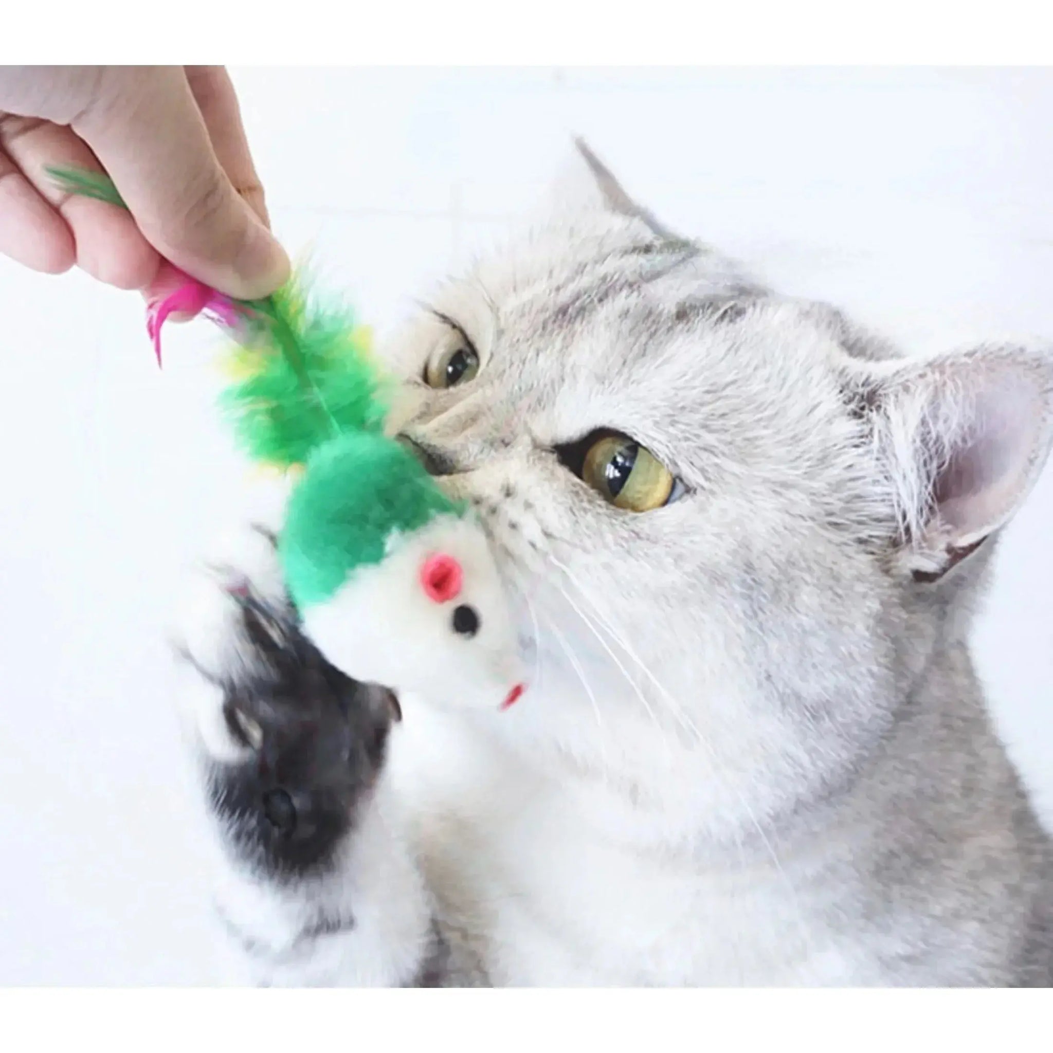 Ratón de plumas para gatos, divertidos juguetes de entrenamiento, interactivos, productos para mascotas.